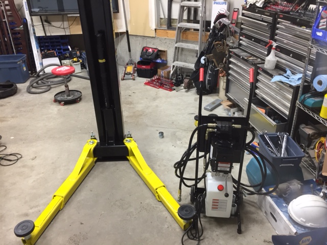 The lift came today, took about an hour to put everything together, I have to rent a hammer drill to complete the mounting process. I also need to pick up some hydraulic fluid and lithium grease to finish the Assembly. I measured out the garage today and i think i will put it right in the middle of the 2 car garage, i have never parked two cars in there anyway and that gives me the most room to work on the car.
