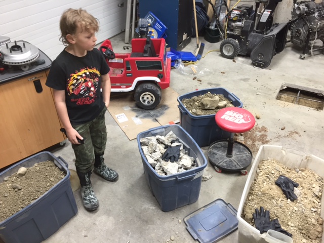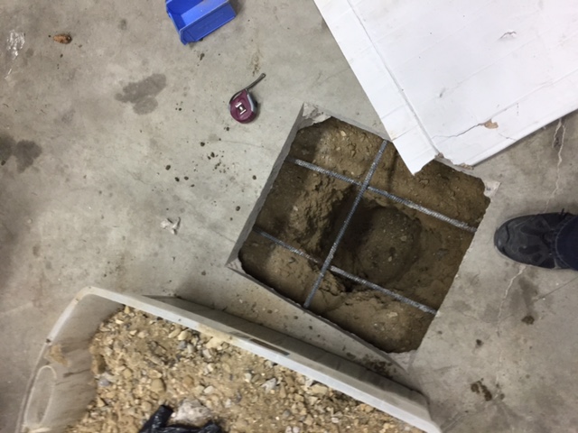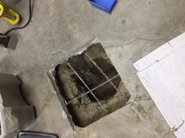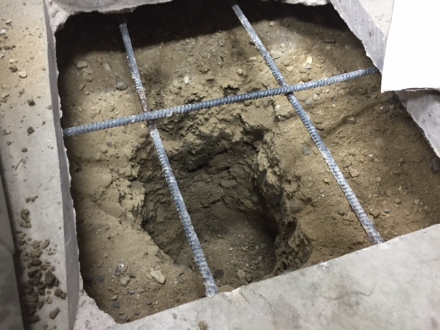 Dug a bit, slow progress because i cant fit a shovel in between the re-bar holes. I ended up using a metal crow bar and a blue parts bin as a scoop, I originally planned to dig down 4' but after getting to 3' and struggling to reach the bottom i decided that 3' is deep enough. :-). Not to worried about the frost line as the garage is heated and I don't think the ground under the garage freezes.