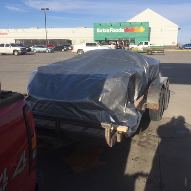 It took about 3.5 hours to get to Lethbridge Alberta, we stopped at the Home Depot and picked up 3 2x4's, some screws and duct tape (thanks guys). We received a call from Jim (the Stewart Transport driver), he let us know that he was running about one hour behind. From there we headed off to the border crossing, the customs agent on the USA side was a bit harsh but a common border crossing attitude, "why do you need a trailer to haul car parts, why couldn't you buy these parts in Canada? Why dont you have money, how are you going to pay for the parts". It wasn't so much the questions but the tone of voice. Regardless he let us go though.