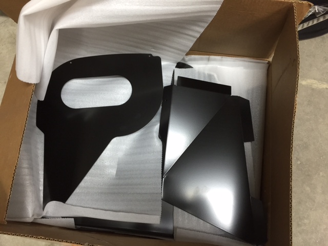 All of the parts are now back from the powder coaters and ready to be riveted to the car. They look amazing. I ended up going with the semi-gloss black, total cost ended up being $600