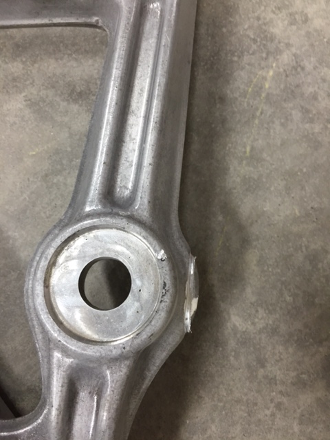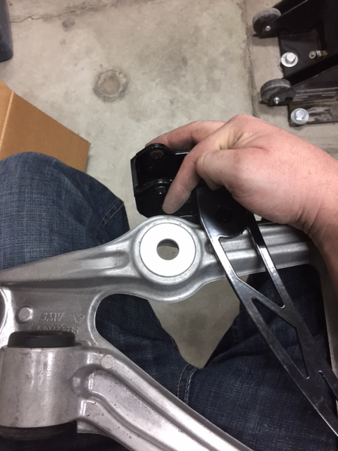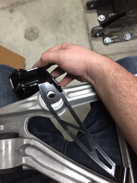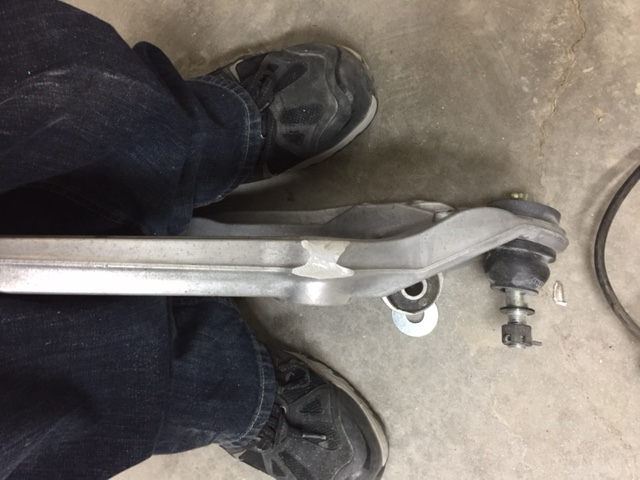 Took a brake from that for a while and tried to fit the shock mount to the lower A arm, it hit the side of the A-arm and wouldn't mount all the way in. I used a cutoff wheel to take off 1/16th or so of an inch... I had to repeat this for the other side as well.
