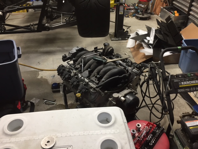 - Pushed the car down the driveway, spun around and placed onto the lift with the back facing out. (ready for the engine)