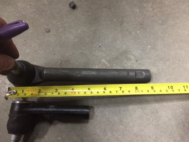 2) Back to the problem I was having with rear tire alignment. The problem has to be one of two things. 1, the tie rod end is to short, 2, the tie rod itself is to short. Maybe they are not factory. Can someone check there set and let me know which one is right. The rear tie rod is 4.75 inches long, the front tie rods are 9" long. by my calculations the right length would be around 7.25". The tie rod itself is 12.5 inches long, measured from the plate it bolts into to the threads that the tie rod screws into. (see pictures).