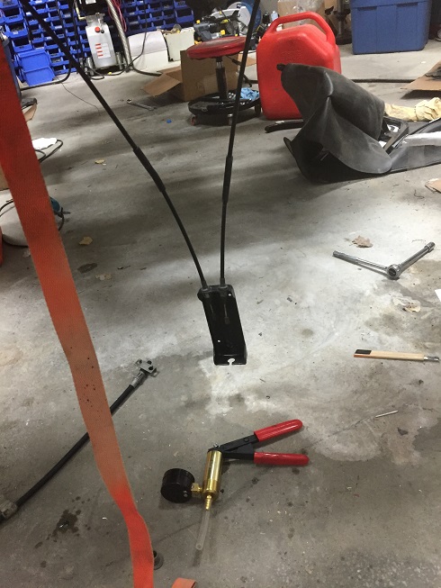 I started off the weekend by filling/bleeding the brakes. I had a 2 air leaks that took me a while to track down. The first was in the fitting at the top of the master cylinder which caused me to have to rerun the front brake line. Once the leaks were gone the lines bled easily.