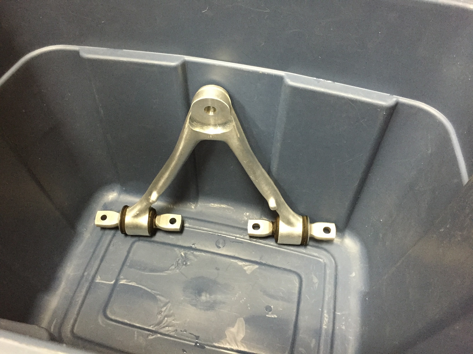 Once apart i filled a large Rubbermaid container with degreaser and warm water and put the kids to work. Nothing like a little child labor to start the afternoon. 4 hours of scrubbing with SOS pads and a wire brush resulted in 4 A arms that look like new.